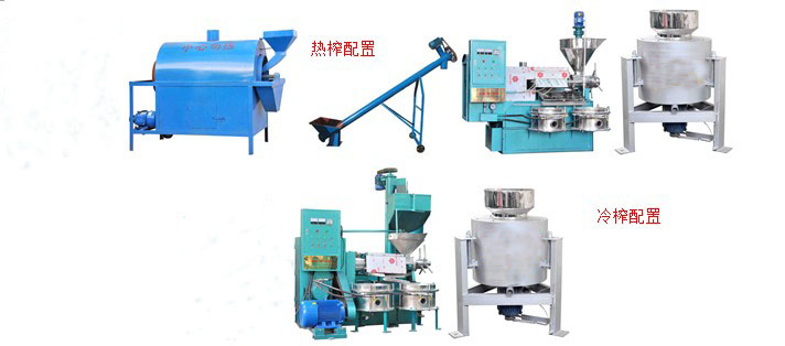 榨油机的冷榨: 冷榨就是在油料不加热的情况下,筛选干净之后直接放入榨油机中进行压榨,这样的压榨方式一次很难压榨干净,所出的油饼也还有含油量,有的需要这类型的一次压榨的油饼,较少的含油量,但是并非完全没有油。那么冷榨的优点就是颜色比较浅淡,榨油的时候不会起泡沫,也不会出现淤锅的现象,颜色比较好看。缺点就是油的味道不是非常的香,压榨干净需要两次以上。由于冷榨出来的油不含有任何的添加成分,最大限度保留了原料原有的营养素,便于人体吸收相应缺乏的营养,因此大部分冷榨油的价格要高出热榨油50%左右。  榨油机的热榨: 热榨就是与冷榨刚好相反,油料在进行加热之后才进行压榨的,这样的压榨方式是一次性可以压榨干净的,所出的油饼是几乎没有含油量的,那么油饼就是完全脱油的饼,在制作无油的物料饼时可以使用。热榨的优点就是压榨的油非常的香醇,经过热加过的油是要比冷榨更有油味的,但是由于是热榨所有有的时候会出现淤锅的现象,这个在压榨的时候需要注意,压榨时在不要上料太着急,根据压榨的出油量适量的进行下料。